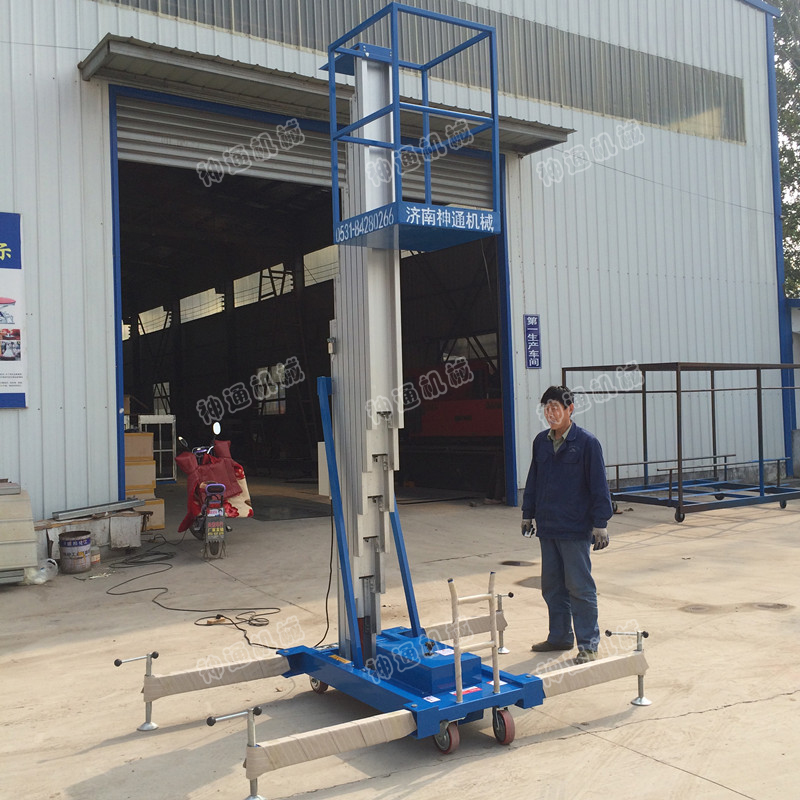 產(chǎn)品介紹:鋁合金式液壓升降平臺采用高強度優(yōu)質(zhì)鋁合金材料,具有造型美觀、體積小、重量輕、運轉靈活,推行方便。升降平穩(wěn)、安全可靠等優(yōu)點。雙柱鋁合金式升降機能穿越一般門廳,可隨意進出電梯,能在極小的空間內(nèi)發(fā)揮最高的舉升能力。使雙人高空作業(yè)變得輕而易舉。且耗電少、無污染、工作時不傷地面,可用于貼墻作業(yè)及探出作業(yè)。鋁合金升降平臺分為單柱、雙柱、三柱和四柱等。